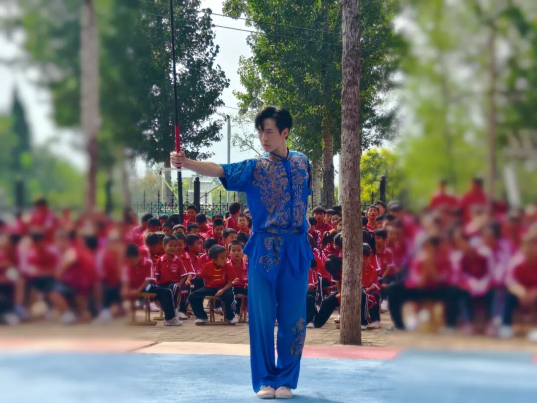 看那少年们,立若苍松挺拔,动似惊鸿翩跹。持长棍者,气势如中岳嵩山般沉稳厚重;舞短兵者,身形似出水银龙般矫健灵动。拳法紧凑有序,步伐轻盈飘逸,整套动作如行云流水般自然流畅,一气呵成。