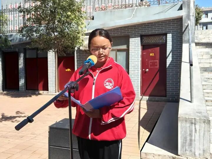 大会第四项:学校团支部、学生会向全体同学发出倡议,学生代表九二班周耘妃同学宣读《倡议书》。号召同学们“以武者之姿严于律己,以君子之风待人接物”,从遵守校规校纪、尊重师长、团结同学、爱护环境等具体行动做起,让文明成为校园最亮丽的底色。