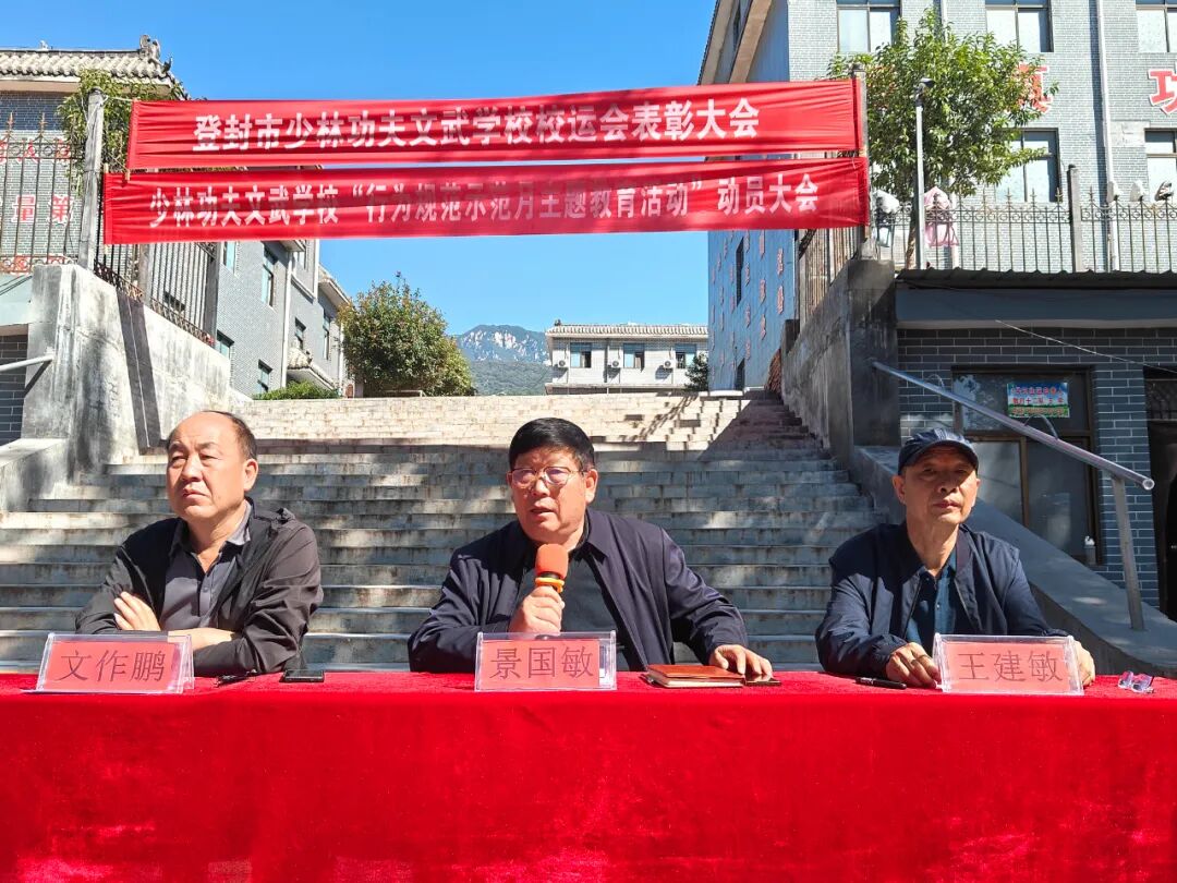 大会第三项:文教部副校长景国敏作“行为规范示范月”主题教育活动动员报告。他在报告中深刻阐述了开展行为规范教育的重要意义,强调“习武先习德,练功先立行”,良好的行为规范是习武之基、立身之本。