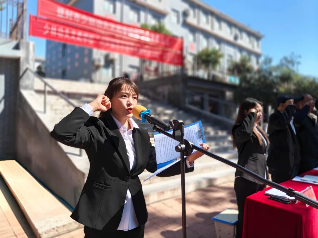大会第六项:全体师生在董海瑕主任的带领下庄严宣誓:“尊道崇德,恪守校训;待友如兄,敬师如亲。 勤学苦练,不负光阴;文武兼修,常怀感恩。严于律己,遵守规章;摒弃陋习,言行端庄。强身健体,励志报国;磨砺意志,为校争光。”誓言声声,铿锵有力,表达了全体师生践行行为规范、共建文明校园的坚定信心和庄严承诺。