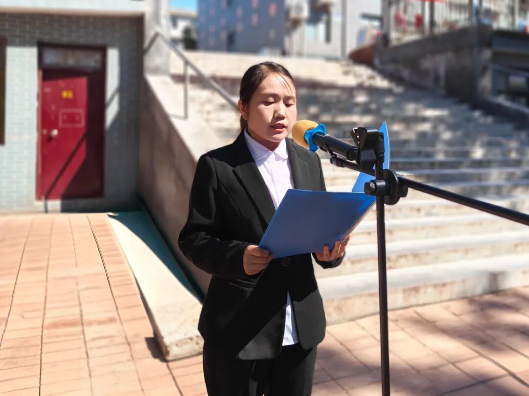 大会第二项:党支部书记张玉龙宣读《“行为规范示范月”主题教育活动实施方案》。方案详细阐述了本次活动的指导思想、目标任务、具体内容和实施步骤,为接下来一个月的主题教育实践活动绘制了清晰的“路线图”,让全体师生明确了行动的方向和要求。